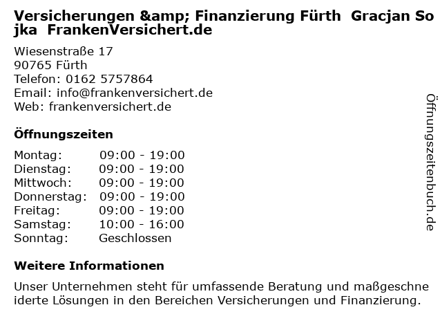 Branchen & Suchbegriffe zu Versicherungen & Finanzierung Fürth Gracjan Sojka FrankenVersichert.de:finanzierung, finanzmakler, finanzplanung, frankenversichert.de, gracjan, investmentbank, sojka, versicherungen, versicherungsagentur, zahnmedizinische versicherung |