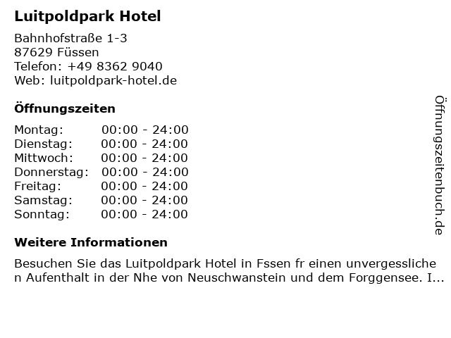 | Öffnungszeiten Luitpoldpark Hotel in Füssen anzeigen | |