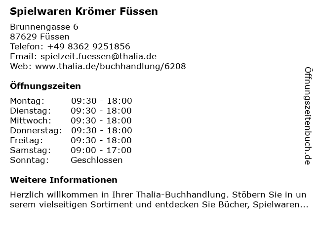 | Öffnungszeiten Spielwaren Krömer Füssen in Füssen anzeigen | |