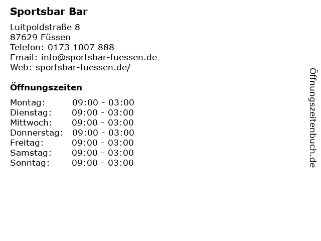 | Öffnungszeiten Sportsbar Bar in Füssen anzeigen | |