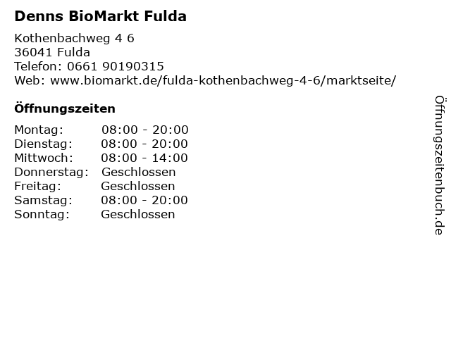 | Öffnungszeiten Denns BioMarkt Fulda in Fulda anzeigen | |