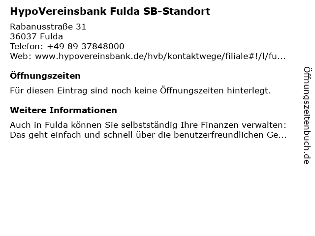 | HypoVereinsbank Fulda SB-Standort anrufen | |