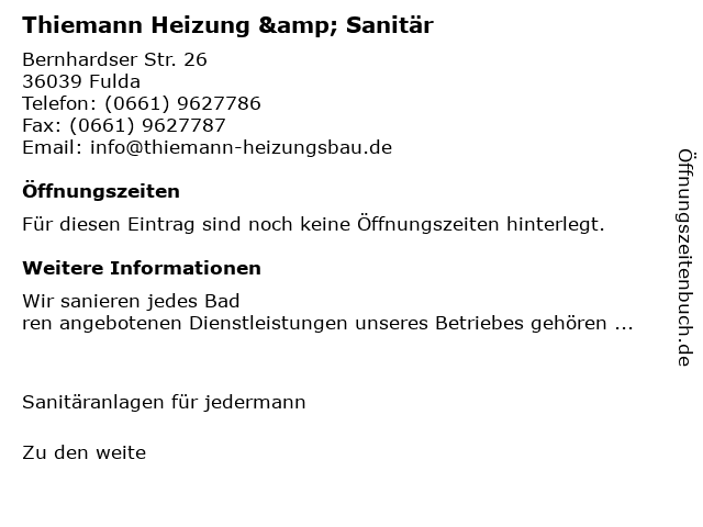 | Öffnungszeiten Thiemann Heizung & Sanitär in Fulda anzeigen | |