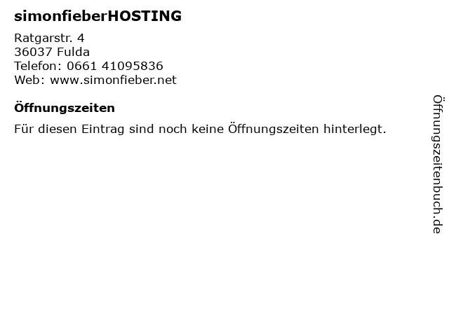 | Öffnungszeiten simonfieberHOSTING in Fulda anzeigen | |
