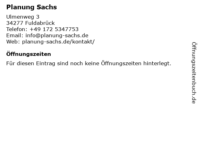 | Öffnungszeiten Planung Sachs in Fuldabrück anzeigen | |
