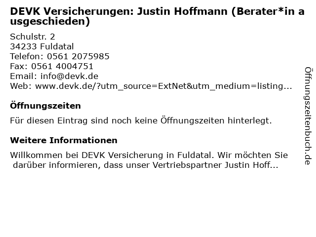 | DEVK Versicherungen: Justin Hoffmann (Berater*in ausgeschieden) anrufen | |
