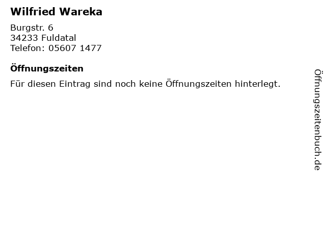 | Öffnungszeiten Wilfried Wareka in Fuldatal anzeigen | |