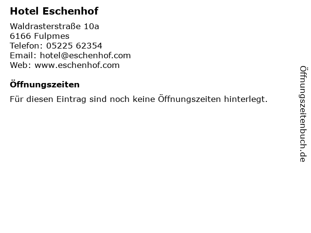 | Öffnungszeiten Hotel Eschenhof in Fulpmes anzeigen | |