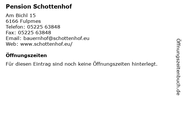 | Öffnungszeiten Pension Schottenhof in Fulpmes anzeigen | |