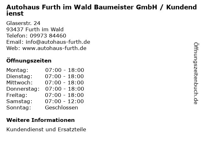 1 Autohaus Furth im Wald Baumeister GmbH / Verkauf (Entfernung: 0,00 km) Glaserstraße 24, 93437 Furth im Wald 6 |