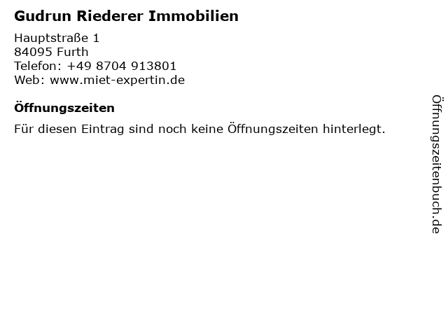 | Öffnungszeiten Gudrun Riederer Immobilien in Furth anzeigen | |