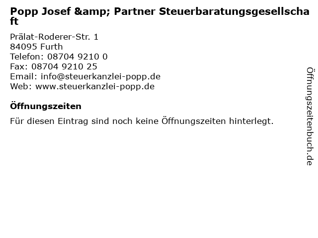 | Popp Josef & Partner Steuerbaratungsgesellschaft anrufen | |