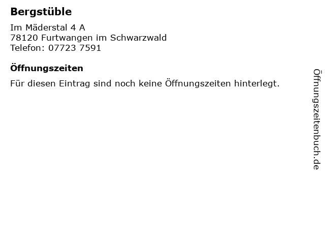 | Öffnungszeiten Bergstüble in Furtwangen im Schwarzwald anzeigen | |