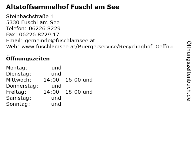 Öffnungszeiten Altstoffsammelhof Fuschl am See