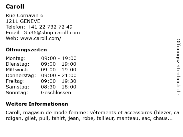 | Öffnungszeiten Caroll in GENEVE anzeigen | |