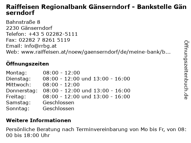 Branchen & Suchbegriffe zu Raiffeisen Regionalbank Gänserndorf - Bankstelle Gänserndorf:abheben, aktien, bankstelle, beratung, devisen, finanzen, geld wechseln, geldautomat, gänserndorf, raiffeisen, regionalbank, sparen, vermögen, vorsorge |