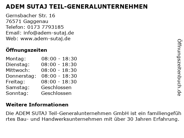 Branchen & Suchbegriffe zu ADEM SUTAJ TEIL-GENERALUNTERNEHMEN:adem, generalunternehmen, sutaj, teil |