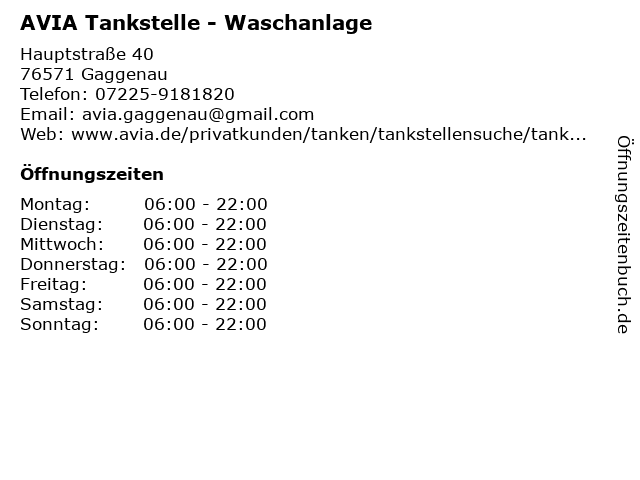 AVIA Tankstelle - Waschanlage in Gaggenau: Telefonnummer, Öffnungszeiten und Adresse