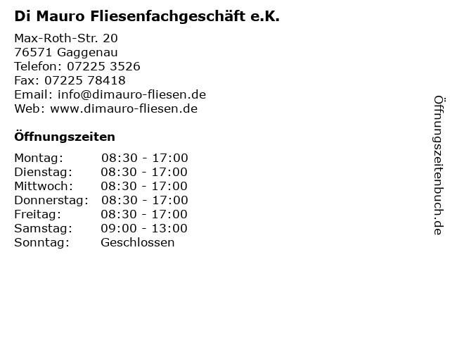 1 Di Miceli Mobility, Inhaberin Kristina Kubsova (Entfernung: 7,71 km) Augustaplatz 4, 76530 Baden-Baden 3 Di Miceli Versicherungsfachmann Agentur für Versicherungservice (Entfernung: 8,63 km) Rheinstraße 53, 76532 Baden-Baden 6 |