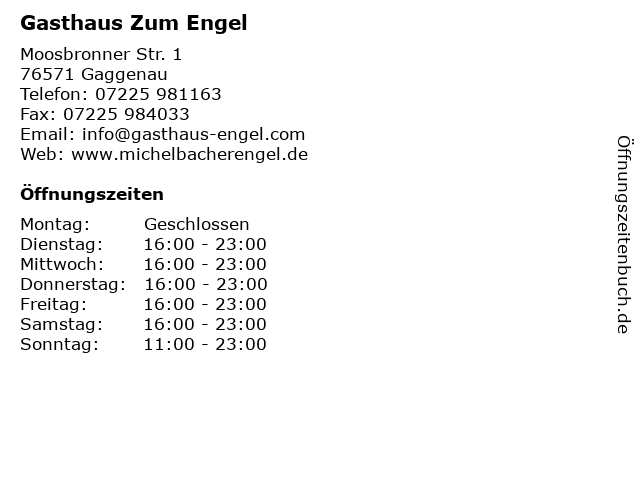 | Öffnungszeiten Gasthaus Zum Engel in Gaggenau anzeigen | |