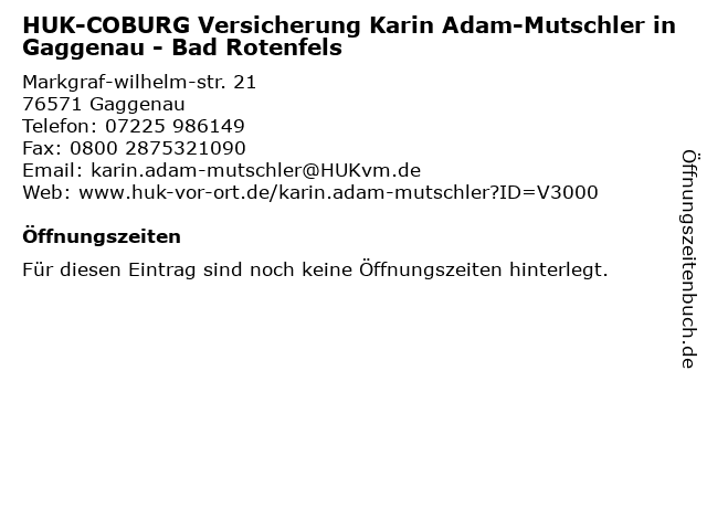 | HUK-COBURG Versicherung Karin Adam-Mutschler in Gaggenau - Bad Rotenfels anrufen | |
