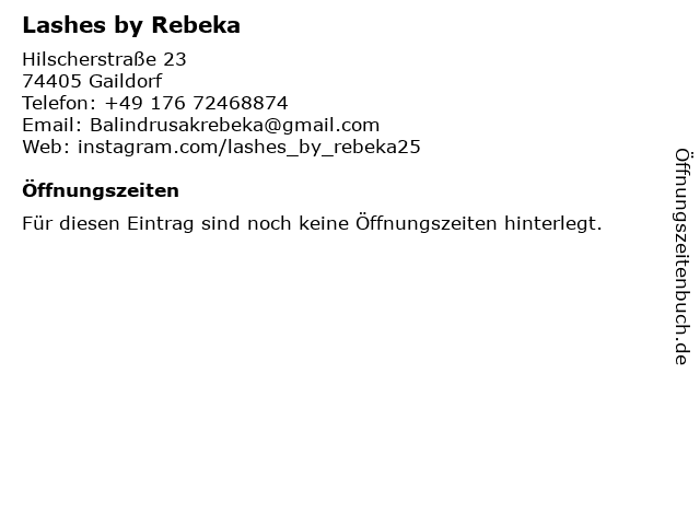 Telefonnummer Lashes by Rebeka in Gaildorf (+49 176 72468874) anrufen | |