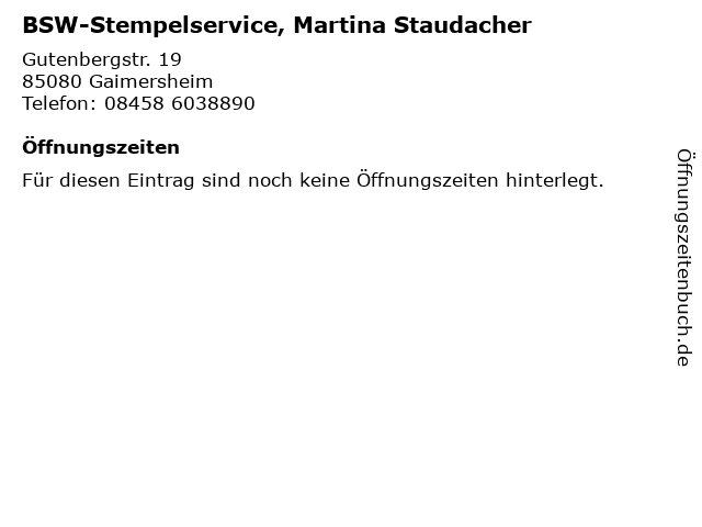 | BSW-Stempelservice, Martina Staudacher anrufen | |