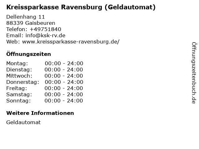 Kreissparkasse Ravensburg (Geldautomat) in Gaisbeuren: Telefonnummer, Öffnungszeiten und Adresse