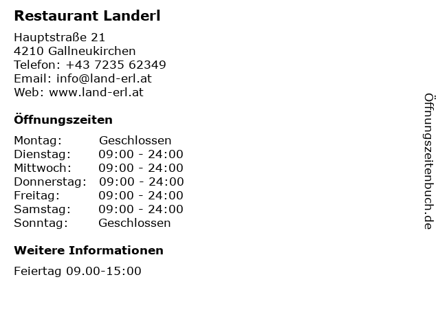 | Öffnungszeiten Restaurant Landerl in Gallneukirchen anzeigen | |