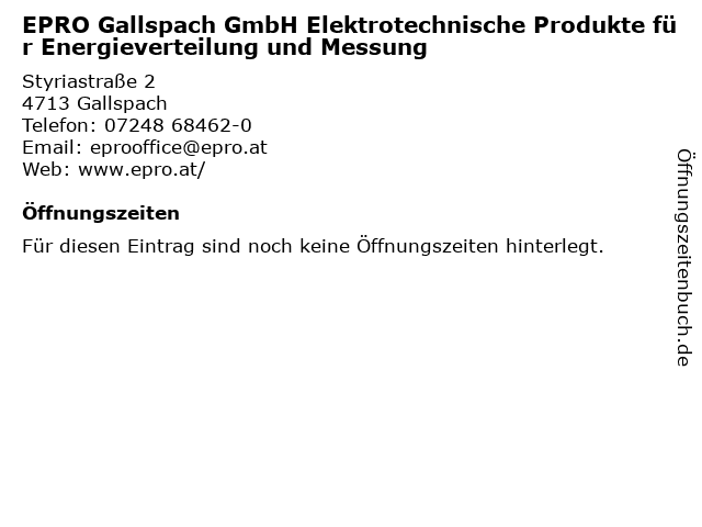 | EPRO Gallspach GmbH Elektrotechnische Produkte für Energieverteilung und Messung anrufen | |
