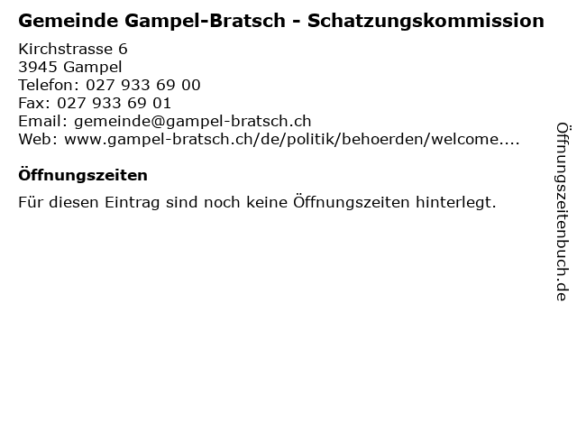 Branchen & Suchbegriffe zu Gemeinde Gampel-Bratsch - Schatzungskommission:amt, behörde, bratsch, gampel, gemeinde, schatzungskommission, verwaltung |
