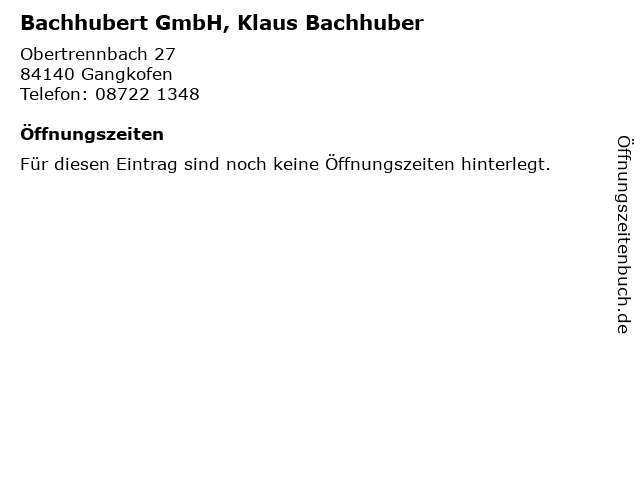 | Bachhubert GmbH, Klaus Bachhuber anrufen | |