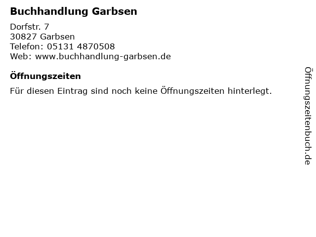 | Öffnungszeiten Buchhandlung Garbsen in Garbsen anzeigen | |