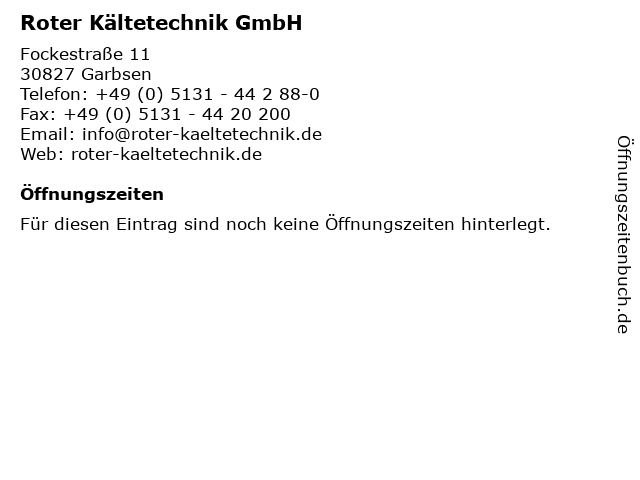 | Öffnungszeiten Roter Kältetechnik GmbH in Garbsen anzeigen | |