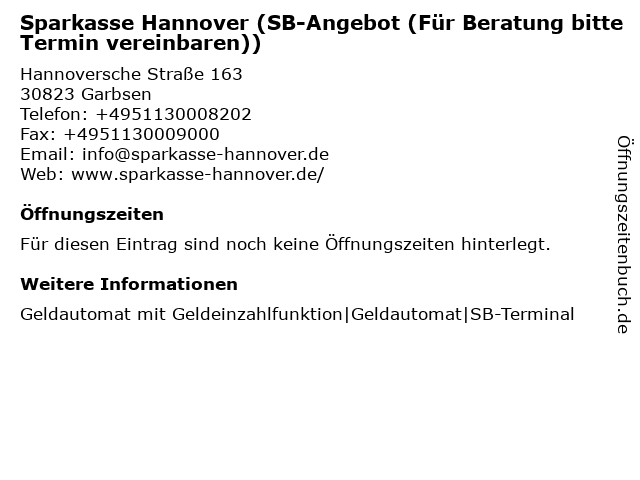 Sparkasse Hannover (SB-Center) in Garbsen: Telefonnummer, Öffnungszeiten und Adresse