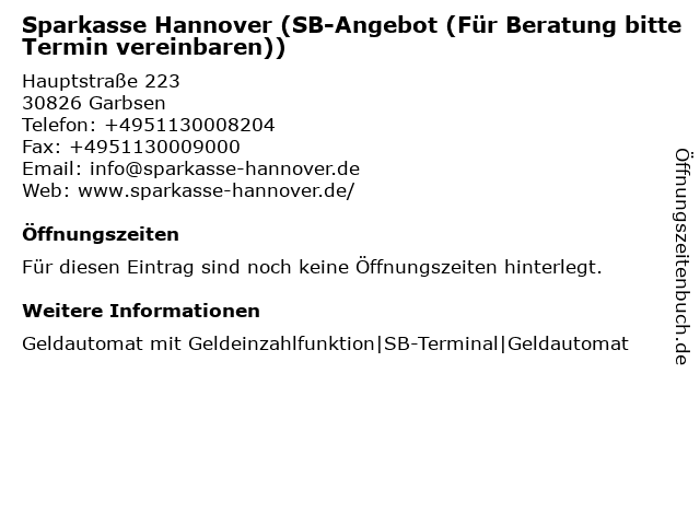 Branchen & Suchbegriffe zu Sparkasse Hannover (SB-Center):center, sb, sparkasse |