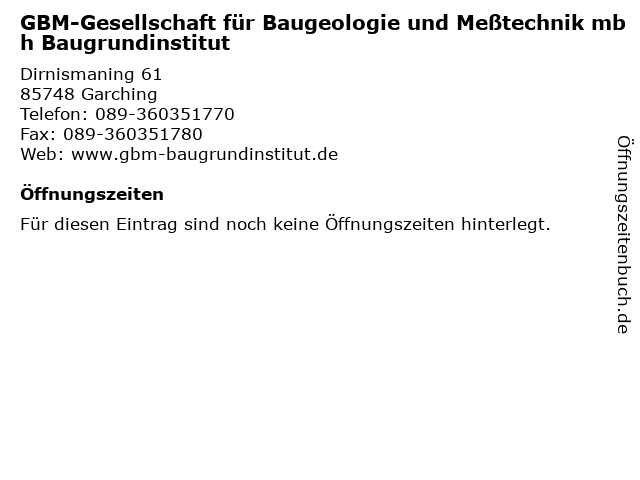 | GBM-Gesellschaft für Baugeologie und Meßtechnik mbh Baugrundinstitut anrufen | |