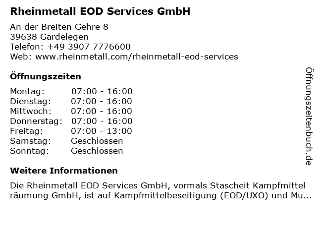 Branchen & Suchbegriffe zu Rheinmetall EOD Services GmbH:alcm, eod, explosive ordnance disposal, kampfmittelbeseitigung, munitions-lebenszyklusmanagement, munitionsentsorgung, rheinmetall, rheinmetall eod services gmbh, services, stascheit kampfmittelräumung, unexploded ordnance services, uxo |