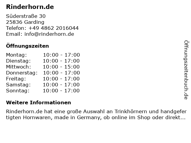 | Öffnungszeiten Rinderhorn.de in Garding anzeigen | |