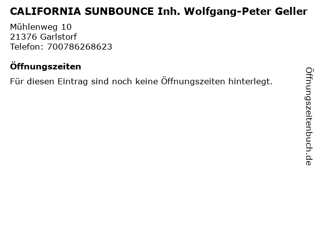 CALIFORNIA SUNBOUNCE Inh. Wolfgang-Peter Geller anrufen | |