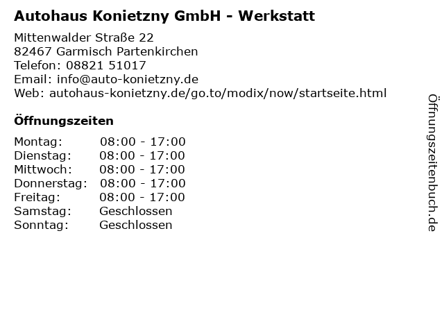 1 Autohaus Konietzny GmbH - Verkauf (Entfernung: 0,01 km) Mittenwalder Str. 22, 82467 Garmisch-Partenkirchen 6 |