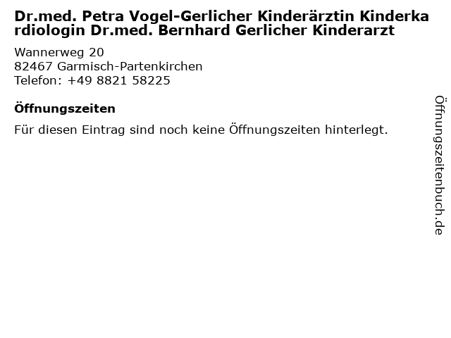 | Dr.med. Petra Vogel-Gerlicher Kinderärztin Kinderkardiologin Dr.med. Bernhard Gerlicher Kinderarzt anrufen | |