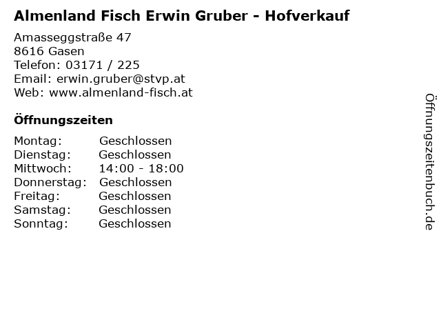 Branchen & Suchbegriffe zu Almenland Fisch Erwin Gruber - Hofverkauf:almenland, aufzucht, erwin, fisch, fische, gruber, hofverkauf, verarbeitung, verkauf |