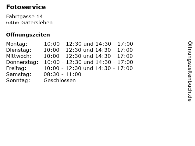 | Öffnungszeiten Fotoservice in Gatersleben anzeigen | |