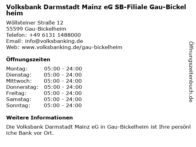 Branchen & Suchbegriffe zu Volksbank Darmstadt Mainz eG SB-Filiale Gau-Bickelheim:bank, baufinanzierung, bickelheim, eg, gau, geldanlage, geldautomat, girokonto, immobilien, kredit, sb, versicherung, volksbank |