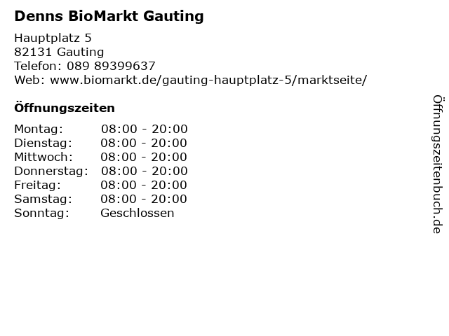 | Telefonnummer Denns BioMarkt Gauting in Gauting (089 89399637) anrufen | |