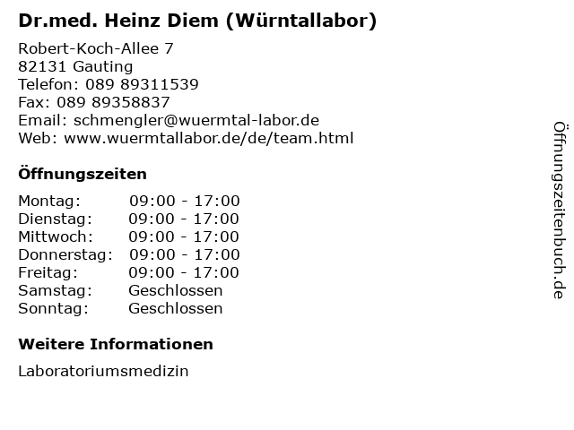 Branchen & Suchbegriffe zu Dr.med. Heinz Diem (Würntallabor):arzt, diem, dr.med., gesundheit, heinz, krankheit, laboratoriumsmedizin, sprechzeiten, würntallabor, ärzte |