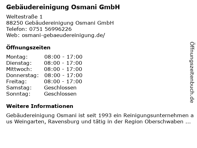Branchen & Suchbegriffe zu Gebäudereinigung Osmani GmbH:außenreinigung, baureinigung, fensterreinigung, fussboden- und fliesenreinigung, gebäudereinigung, osmani, reinigungsdienstleister |