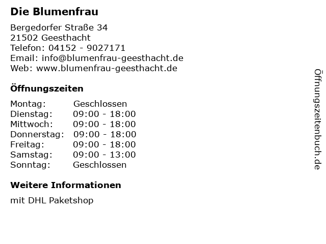 | Adresse Die Blumenfrau in Geesthacht anzeigen |