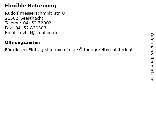 | Öffnungszeiten Flexible Betreuung in Geesthacht anzeigen | |